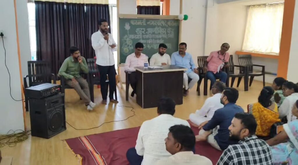 मेकिंग महाराष्ट्र – बारामती : बारामती नगर परिषद मार्फत प्रधानमंत्री पथविक्रेता आत्मनिर्भर निधी (पीएम स्वनिधी) अंतर्गत पथविक्रेते “लोक कल्याण मेळावा ” यांचा आयोजित केला होता.सदर मेळाव्यात पथ विक्रेते यांना शासनामार्फत मिळणाऱ्या कर्जबाबत माहिती दिली. या कार्यक्रमाला बारामती नगर परिषद समिती सदस्य फैयाज शेख,शुभम अहिवळे, असिफ शेख व नगर परिषद कर्मचारी उपस्थित होते.यावेळी बारामती नगर परिषद पथविक्रेता समिती सदस्य गौरव अहिवळे यांनी बोलताना सांगितले की बारामती नगर परिषदेने पथविक्रेते यांची नोंदणी करावी तसेच त्यांना हक्काची जागा देऊन आत्मनिर्भर करावे.नाही तर कर्ज दिल्यानंतर पथ विक्रेते यांच्यावर कारवाई झाली तर पथ विक्रेते कर्जबाजारी होतील.अशी परिस्थिती होऊ देऊ नका असे नगरपरिषद प्रशासनाला मेळाव्याच्या माध्यमातून सांगितले. पथविक्रेता समिती सदस्य शुभम अहिवळे, फैयाज शेख यांनी यावेळी बोलताना सांगितले की आम्ही पथविक्रेत्यांच्या न्याय हक्कासाठी लढत राहणार आहोत.