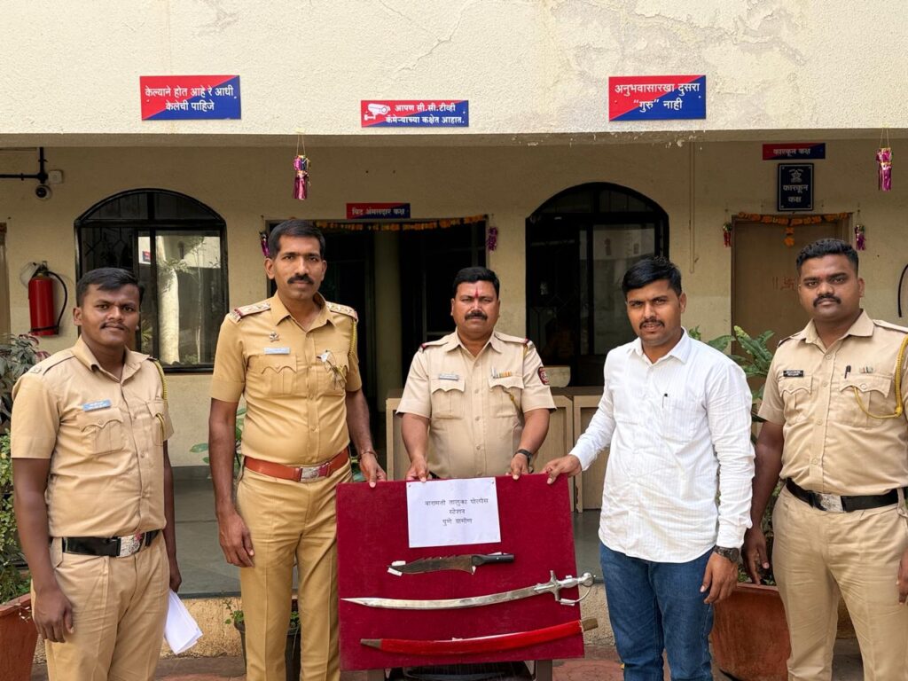 झडती घेतली असता एक तलवार आणि लोखंडी कोयता मिळून आला. या प्रकरणी आरोपीविरुद्ध बारामती तालुका पोलिस ठाण्यात भारतीय हत्यार कायदा कलम ४,२५ अंतर्गत गुन्हा नोंदविण्यात आला आहे.ही कारवाई पुणे ग्रामीण पोलीस अधीक्षक संदीपसिंह गिल्ल, अप्पर पोलीस अधीक्षक गणेश बिरादार, उपविभागीय अधिकारी सुदर्शन