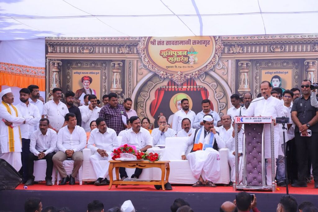 मेकिंग महाराष्ट्र बारामती (प्रतिनिधी) दि १७- बारामती नगर परिषदेच्या वतीनं उभारण्यात येत असलेल्या संत सावता माळी सभागृहाच्या भूमिपूजन सोहळ्यात उपमुख्यमंत्री अजित पवार यांनी भूमिपूजन केले आणि कार्यक्रमात सहभागही घेतला. या कार्यक्रमाच्या निमित्तानं बारामती पोलीस पाटील संघटनेतर्फे पूरग्रस्त बांधवांसाठी ४० हजार रुपयांचा धनादेश देण्यात आला. त्यासाठी अजित दादांनी त्यांचे आभार मानले.