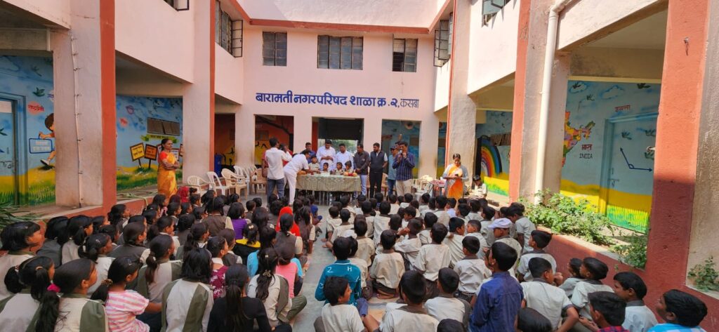• मेकिंग महाराष्ट्र (प्रतिनिधी) दि.२६ – बारामती मध्ये केंद्रीय मंत्री रामदासजी आठवले यांचा वाढदिवस सलग चार दिवस साजरा करण्यात आला, या कार्यक्रमांमध्ये विशेष म्हणजे वाढदिवसानिमित्त शालेय विद्यार्थ्यांना साहित्याचे वाटप करत तसेच शासकीय रुग्णालय या ठिकाणी रुग्णांना फळे वाटपाचा कार्यक्रम आयोजित करून वाढदिवस साजरा करण्यात आला तसेच मूकबधिर शाळा या ठिकाणी अन्नदान,आणि विद्यार्थ्यांना लागणाऱ्या गरजू गोष्टींचे वाटप करण्यात आले.आयुष्यमान भारत योजना याचे कार्ड काढण्यासंदर्भात कसबा साठेनगर येथे कॅम्प घेण्यात आला. हा वाढदिवस रिपब्लिकन पार्टी ऑफ इंडिया आठवले गट बारामती तालुकाध्यक्ष,संजयजी वाघमारे,सुनील शिंदे , बीजेपीचे संतोष जाधव ,रत्नप्रभा साबळे, पिंकू ताई मोरे, प्रमोद खंडागळे, सीमाताई घोरपडे,BJP चे पल्लवी वायकर,वर्षाताई भोसले तालुकाध्यक्ष ,संतोष जाधव, जयश्री गुंडेजाताई,तसेच राष्ट्रवादी काँग्रेसचे कार्याध्यक्ष विशाल जाधव, बीजेपीचे शहराध्यक्ष वायसे तसेच मुकेश वाघेला,पत्रकार संघटनांचे, योगेश नालंदे अध्यक्ष संपादक पत्रकार संघ, चेतन शिंदे,मन्सूर शेख,तानाजी पाथरकर तसेच,पत्रकार तैनूर शेख , शाळेचे मुख्याध्यापक शिक्षक शिक्षिका,या कार्यक्रमावेळी आवर्जून उपस्थित होते.